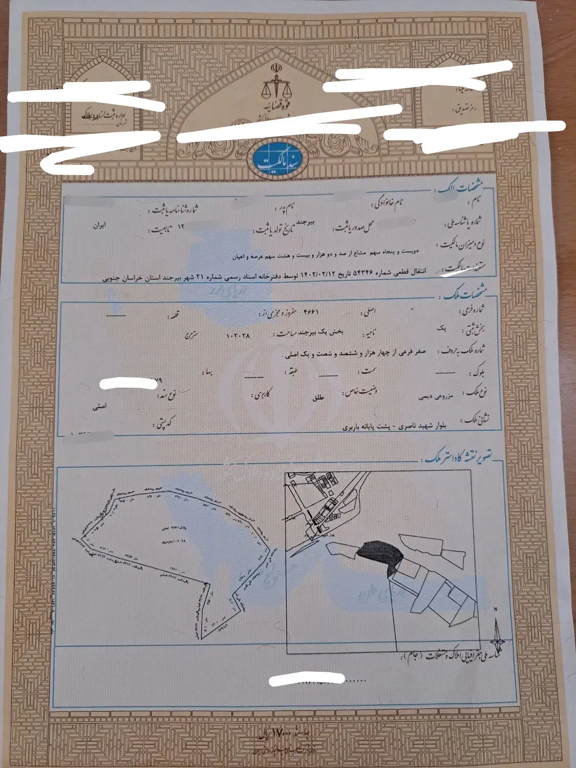 فروش زمین و کلنگی 317 متری بیرجند و حومه